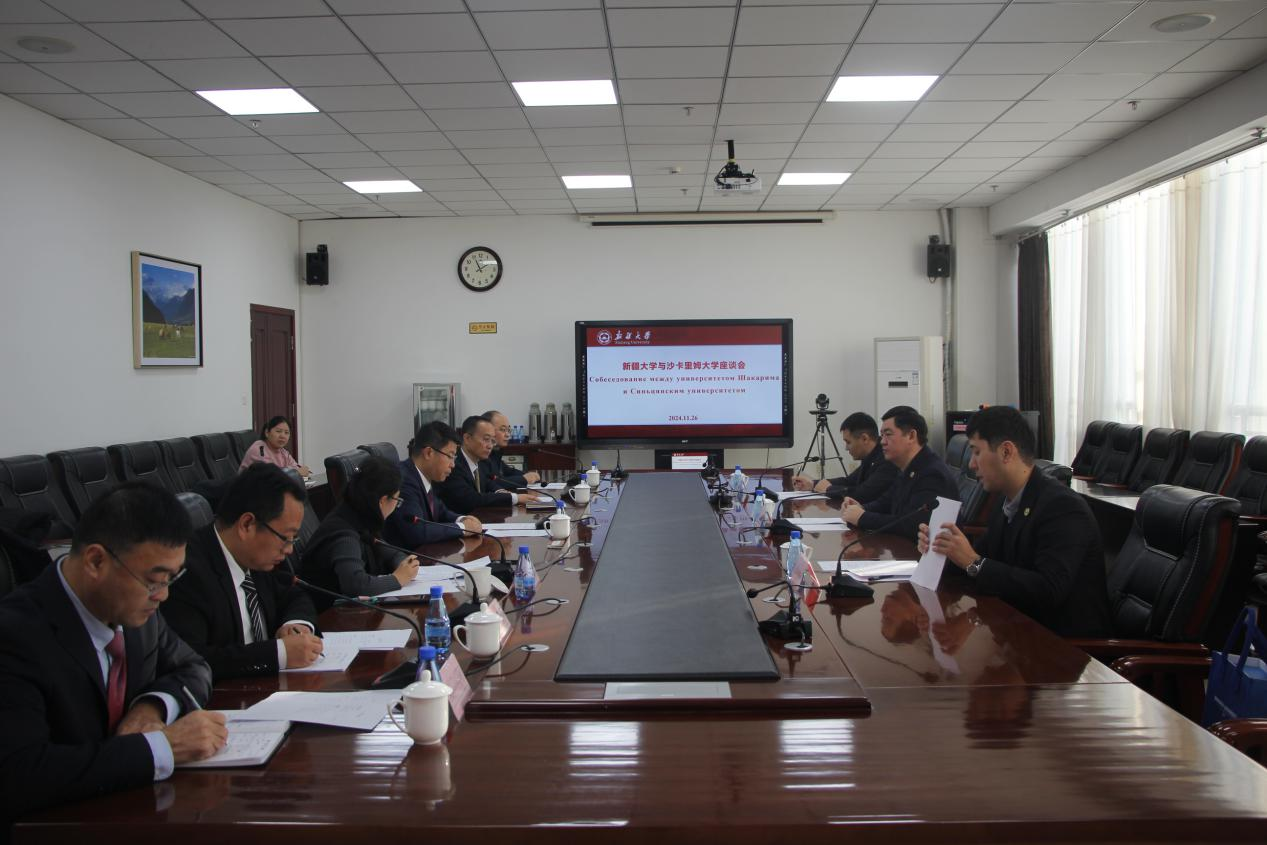 11月26日,哈萨克斯坦沙卡里姆大学董事长兼校长杜曼·奥林别科夫一行3人到访九九精品视频一区在线久久久久久久久久毛片精品美女|国产99久久久久久免费看|中文精品99久久国产|国产69精品久久久久9999|精品久久久久久中文字幕无码|亚洲熟妇无码久久精品国产精品99|精品国产天堂综合一区在线并开展座谈交流。九九精品视频一区在线久久久久久久久久毛片精品美女|国产99久久久久久免费看|中文精品99久久国产|国产69精品久久久久9999|精品久久久久久中文字幕无码|亚洲熟妇无码久久精品国产精品99|精品国产天堂综合一区在线党委常委、副校长汪烈军参加座谈会。会议由九九精品视频一区在线久久久久久久久久毛片精品美女|国产99久久久久久免费看|中文精品99久久国产|国产69精品久久久久9999|精品久久久久久中文字幕无码|亚洲熟妇无码久久精品国产精品99|精品国产天堂综合一区在线国际交流与合作处处长朱新武主持。